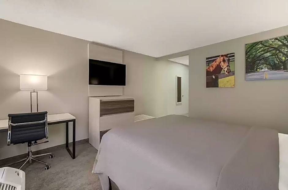 This room features seating area with a sofa and a cable TV. A microwave, refrigerator, and coffee-making facilities are also included.